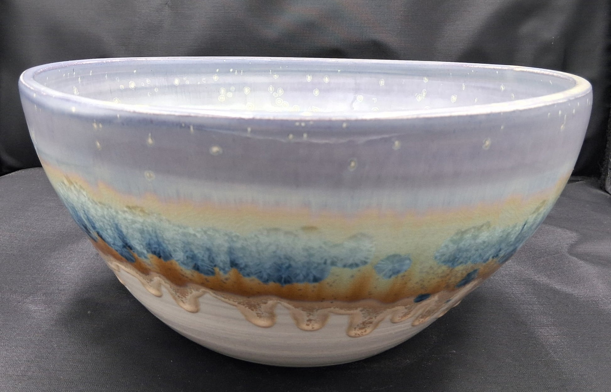 Bowl, Teal, Tan, Blue 10" x 5"
